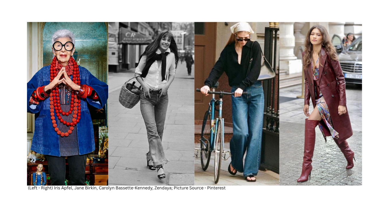 Think about your style icons. Trends don’t define them — they’re defined by consistency. Jane Birkin, Zendaya, Iris Apfel, Carolyn Bessette-Kennedy — each has a look that feels distinctly theirs, no matter the decade.